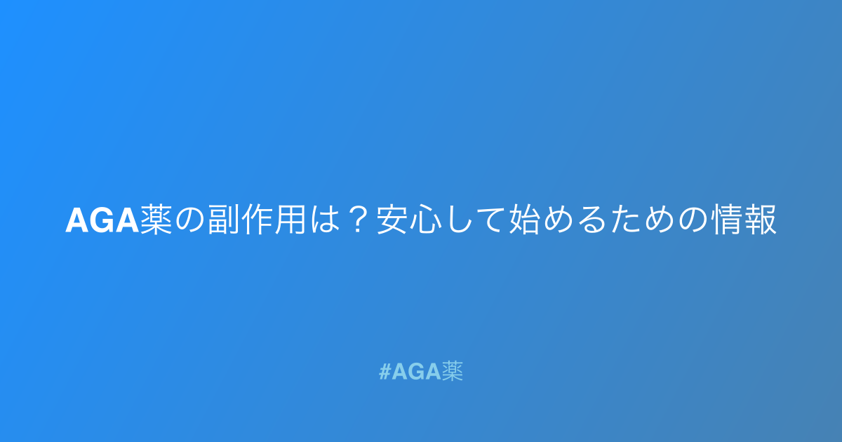 AGA(男性型脱毛症)治療薬は、薄毛に悩む多くの方にとって希望の光ですが、副作用に対する不安もつきものです。