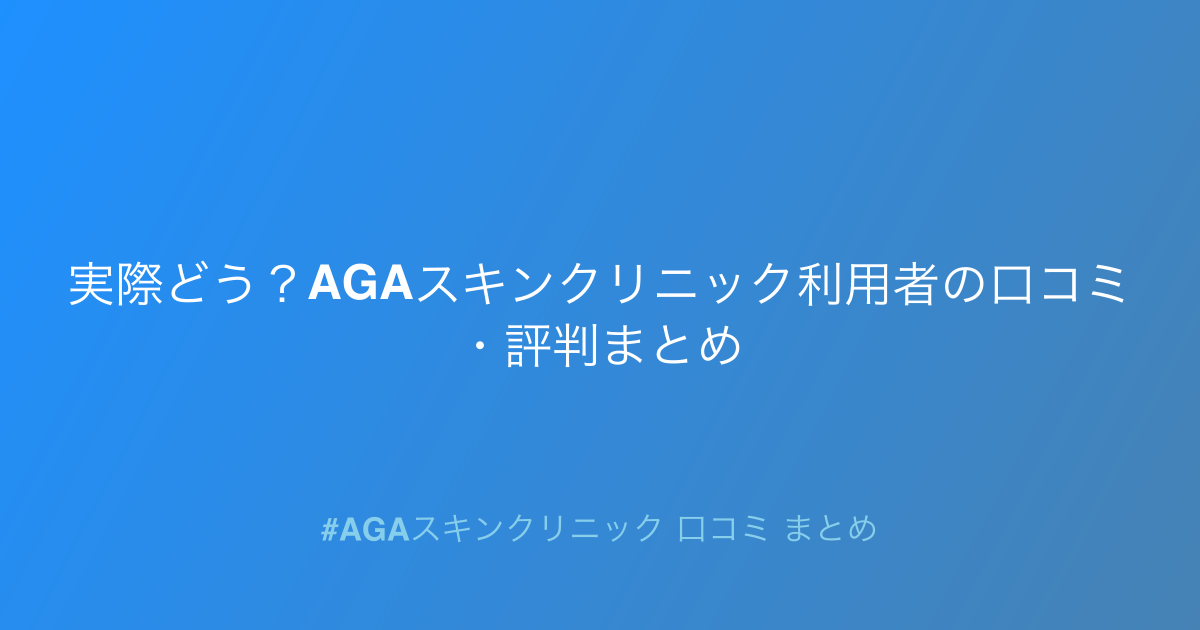 AGAスキンクリニックの口コミ・評判:効果があった?なかった?治療別の評価を徹底分析