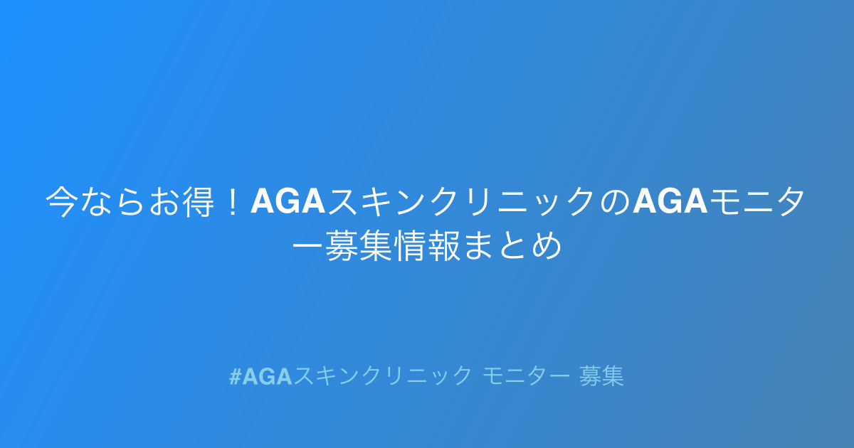 AGAスキンクリニック モニター募集の概要:薄毛治療の新たな選択肢