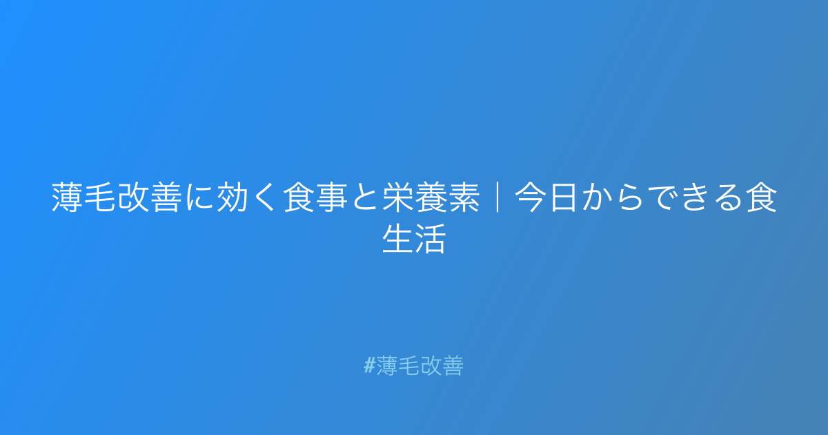 よく検索される「薄毛 改善 食事 方法」「薄毛 改善 食事 やり方」などの疑問にもお答えします。
