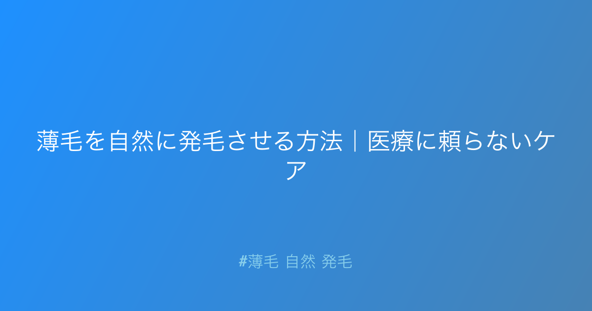 よく検索される「薄毛 自然 発毛 方法」「薄毛 自然 発毛 やり方」などの疑問にもお答えします。