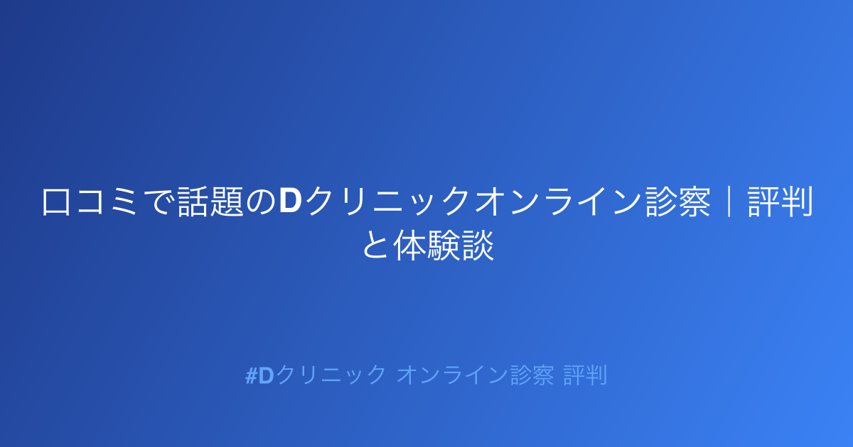 - Dクリニック オンライン診察の評判は本当?口コミで話題の真相を徹底解剖