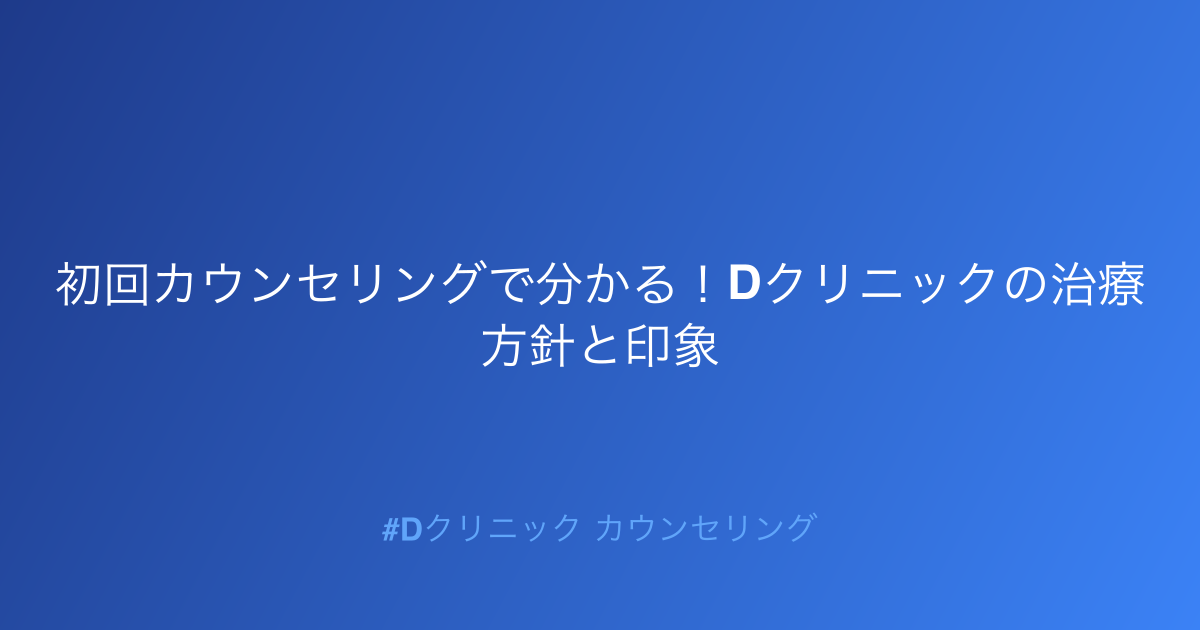 - 初回カウンセリングで分かる!Dクリニックの治療方針:あなたに合った治療法を見つける