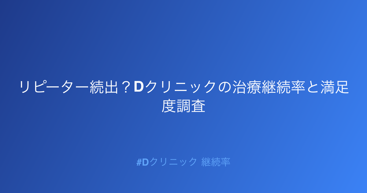 - Dクリニックの治療継続率が高い理由:リピーター続出の秘密を解明