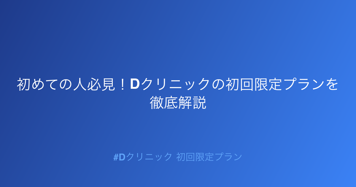Dクリニック 初回限定プランについて理解を深めたい方に向けて、この記事では包括的な情報を提供します。
