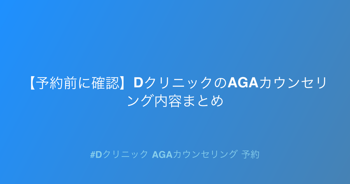 - Dクリニック AGAカウンセリング予約前に知っておくべきこと:概要と重要ポイント