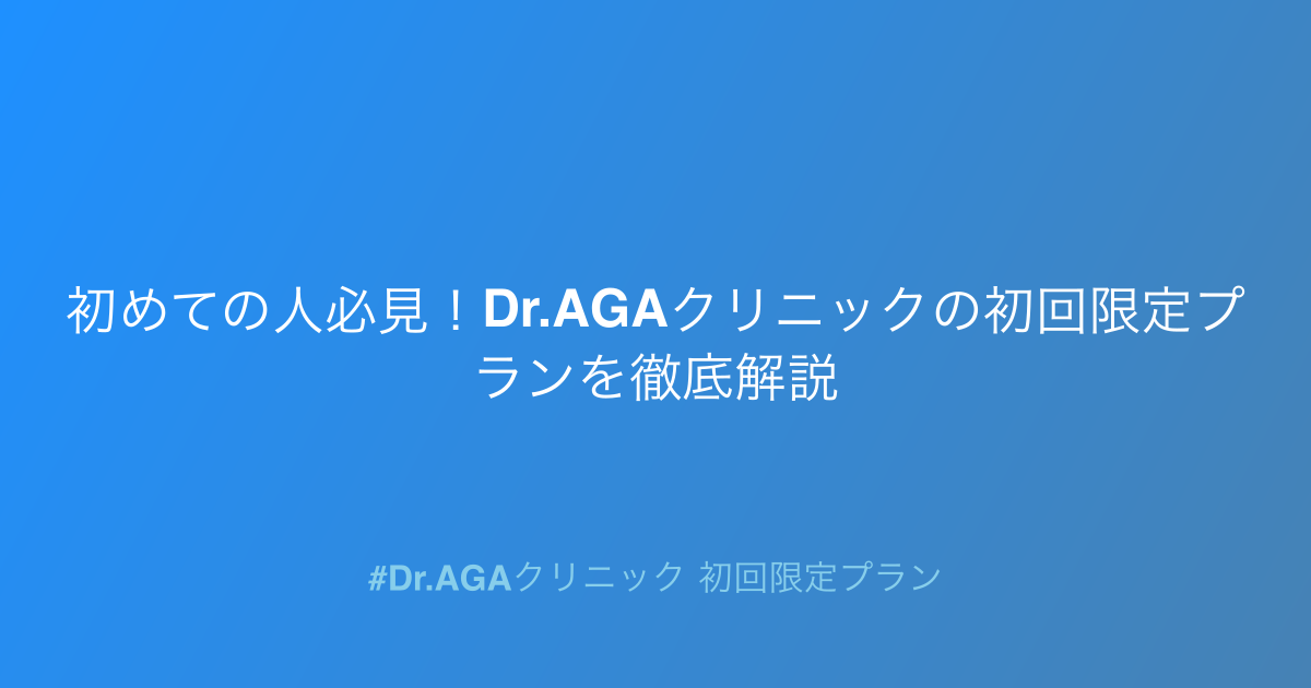 - Dr.AGAクリニック 初回限定プランとは?初めての方への徹底ガイド