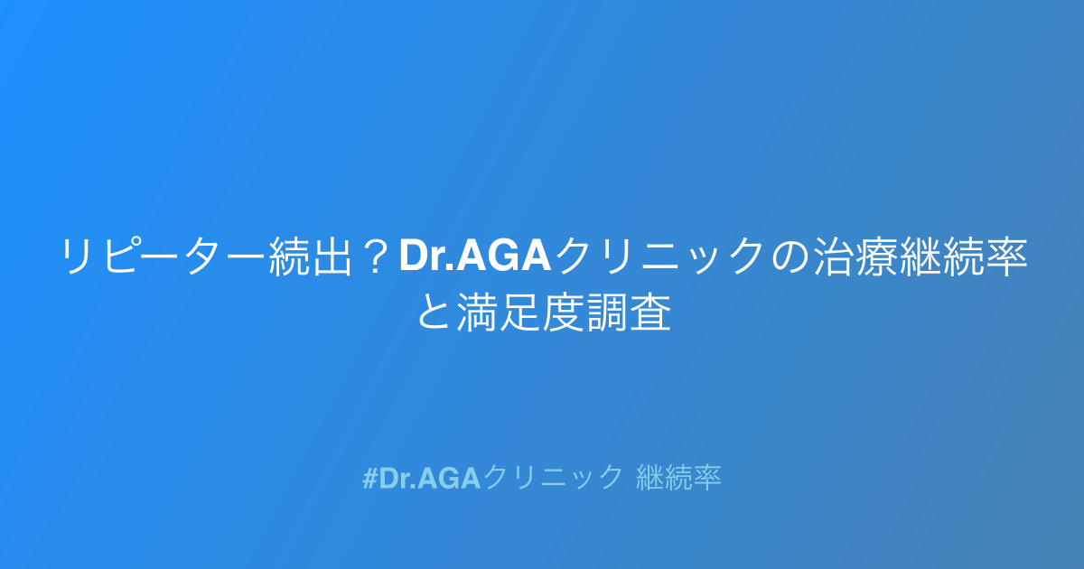 - Dr.AGAクリニック 継続率が高い理由:リピーター続出の秘密を徹底解剖