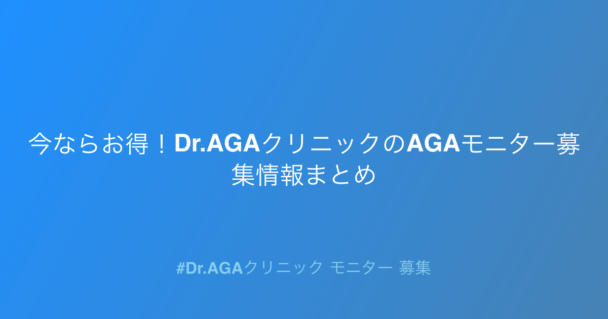 - Dr.AGAクリニックのAGAモニター募集:今すぐ応募して、お得に薄毛治療を始めよう!