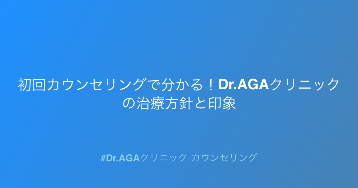 AGA(男性型脱毛症)治療を検討する上で、Dr.AGAクリニックのカウンセリングは非常に重要なステップです。